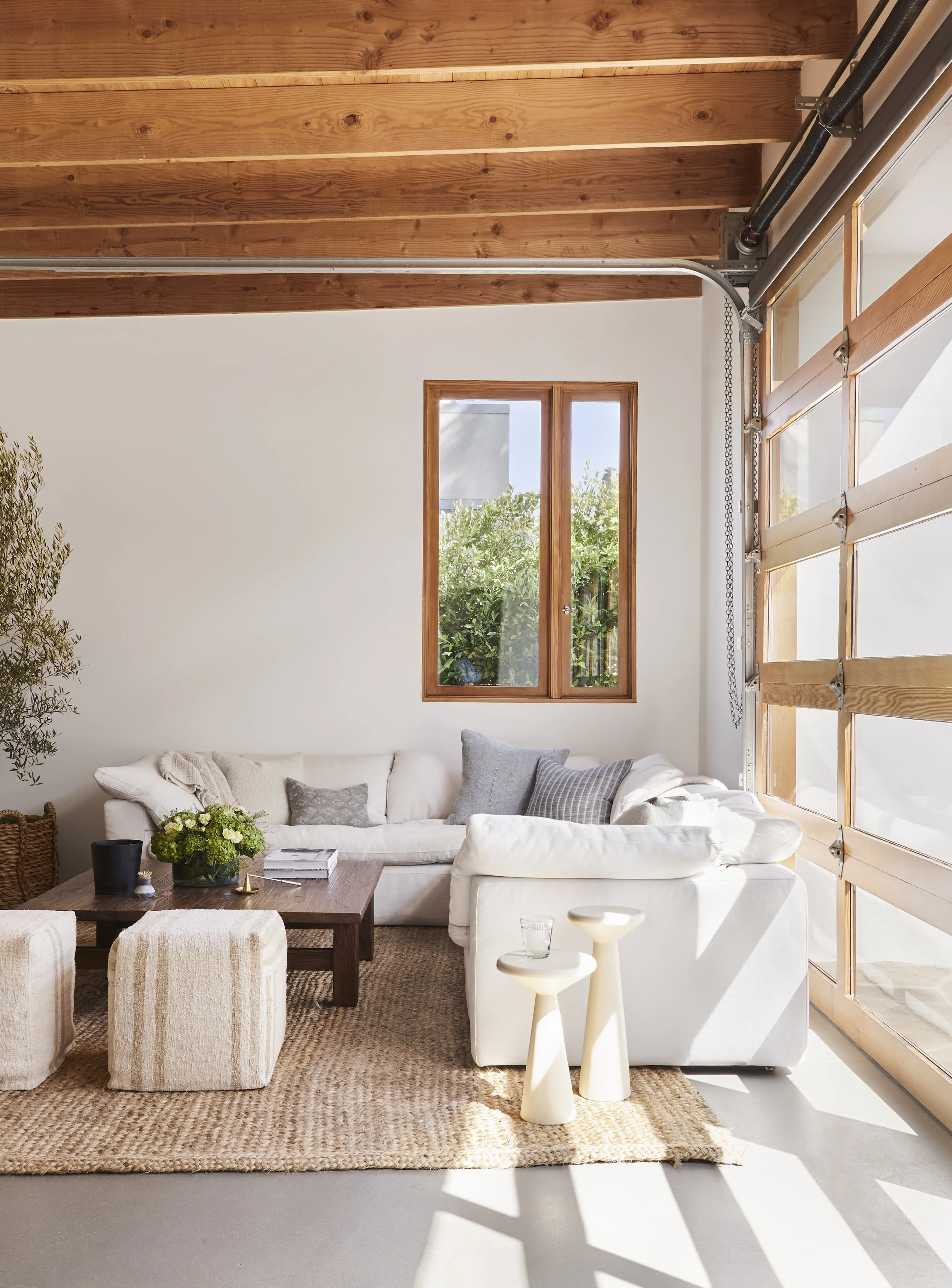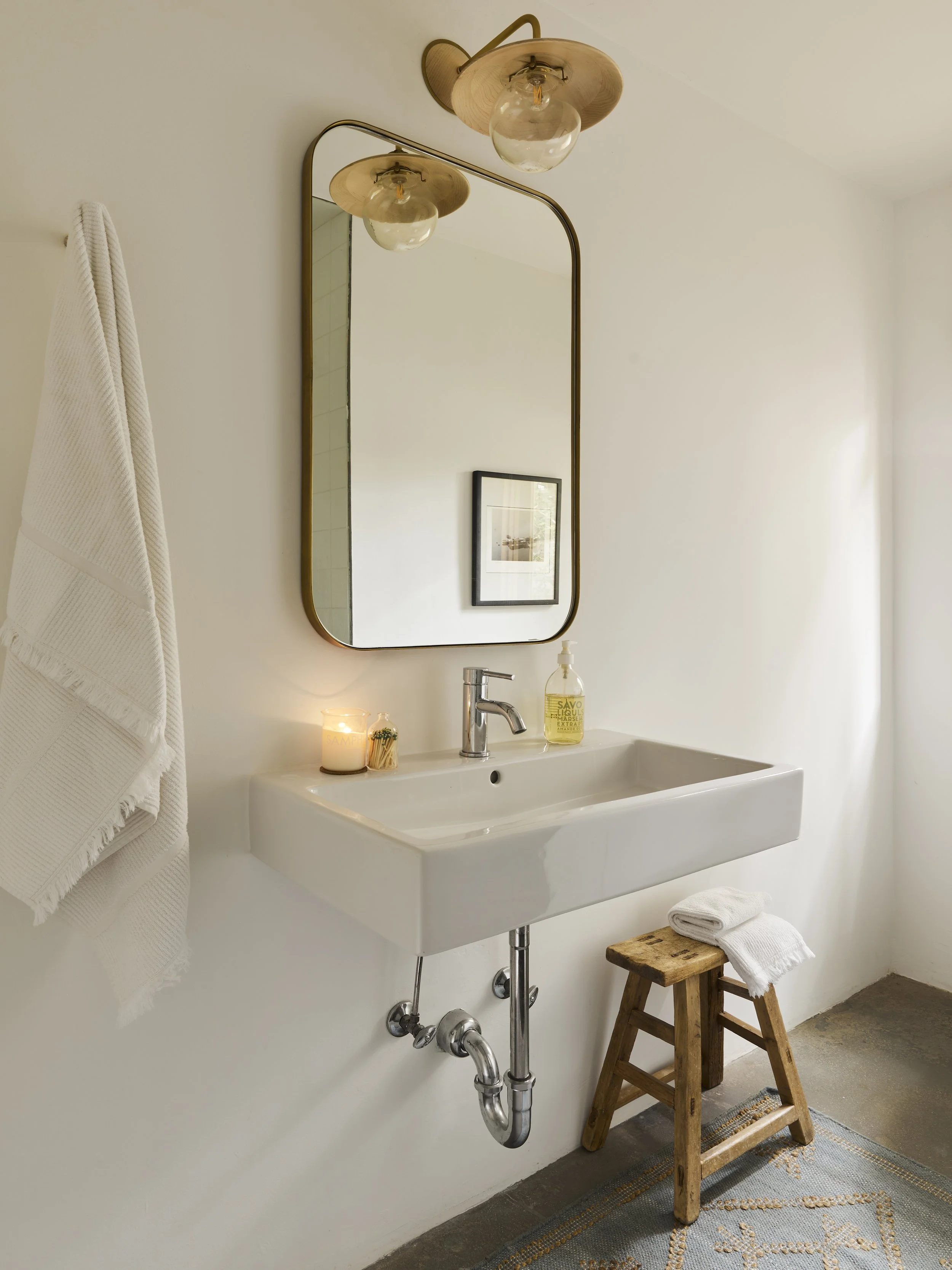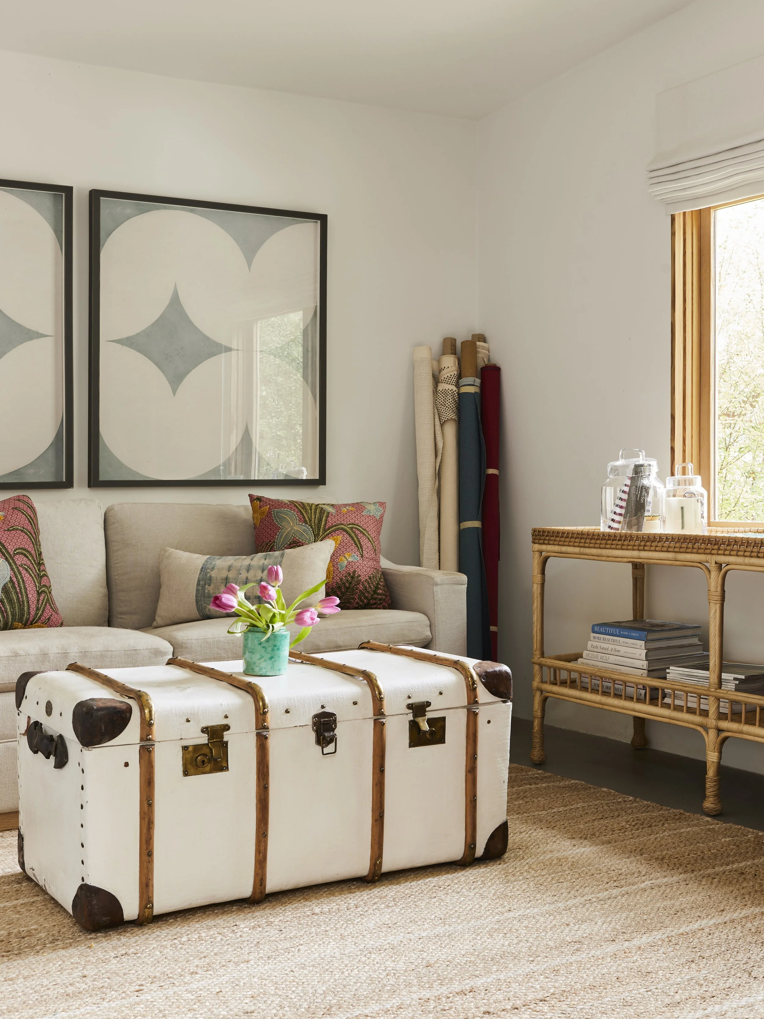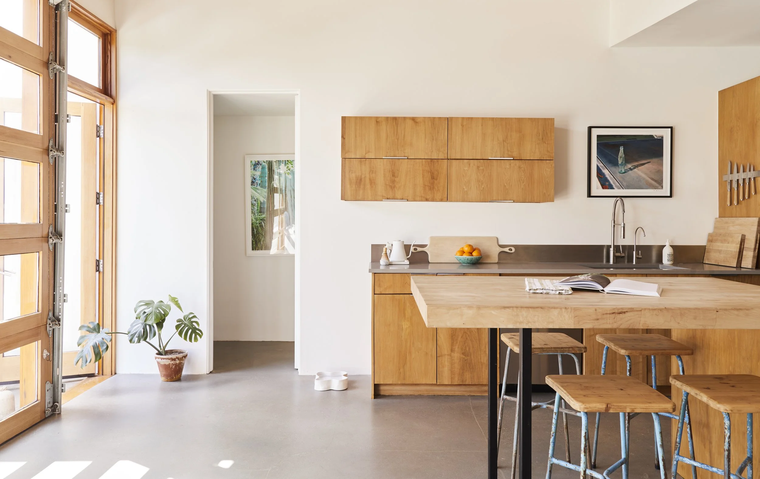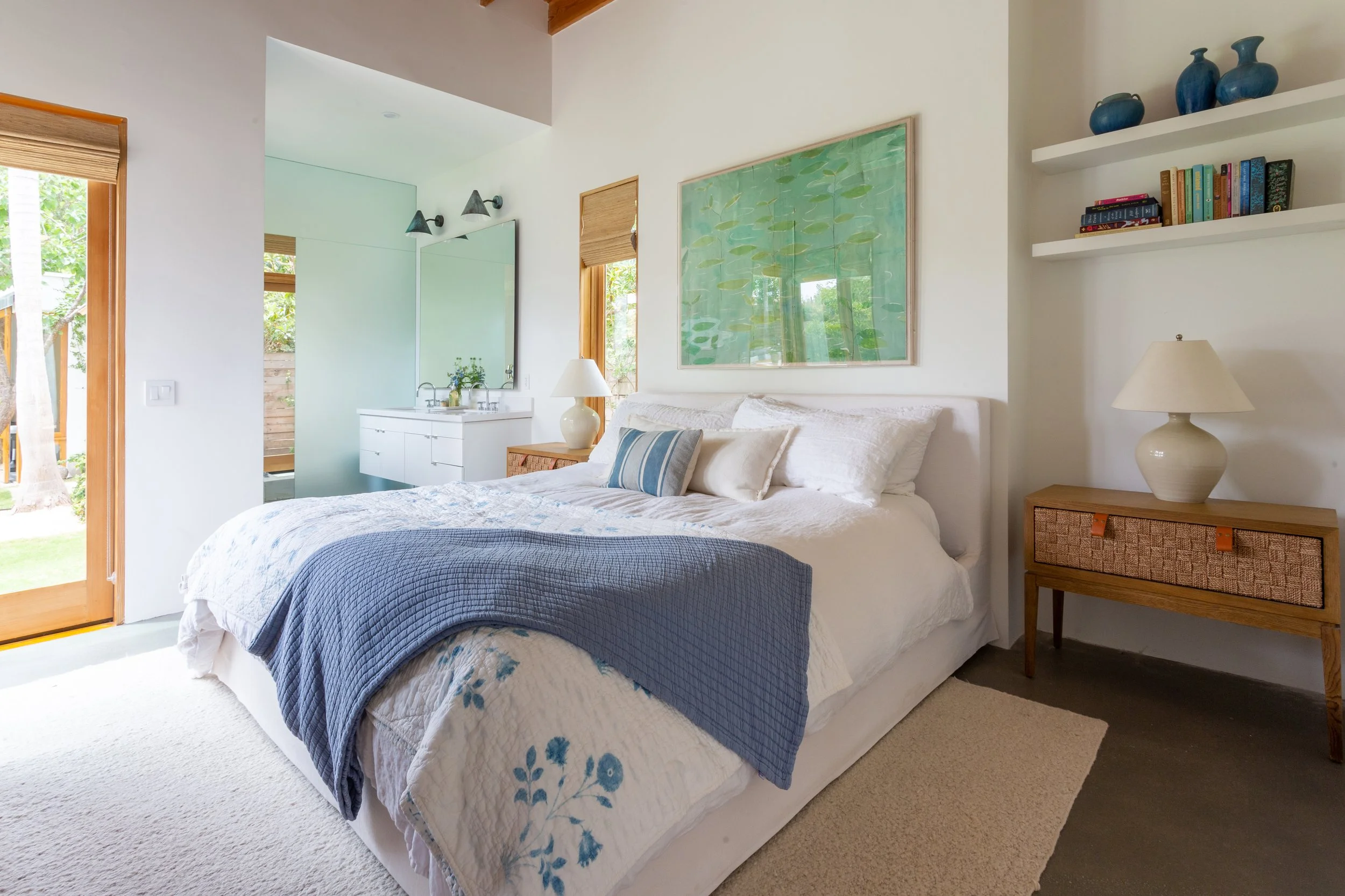 Originally built in the ‘50s, this modern beach house epitomizes indoor-outdoor living. I treated the landscape and interior as one, and let the natural surroundings inform every finish selection. The sunken concrete tub in the primary bathroom instantly reminded me of travels to Asia, which inspired an interior built on layers of organic textures and found items.